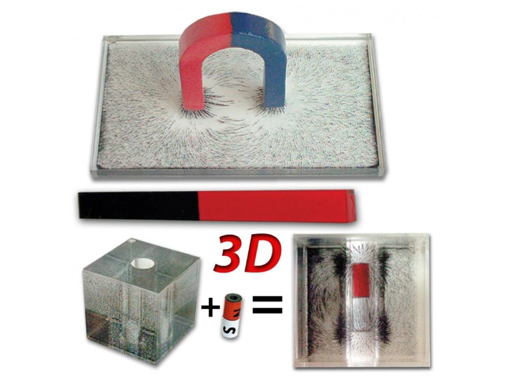 Könnyedén és látványosan vizsgálhatjuk a mágneses tér szerkezetét térben és síkban. A zárt akrilüveg testekben lévő speciális folyadékban ülepedő finomszemcsés vaspor az erővonalak mentén rendeződik.