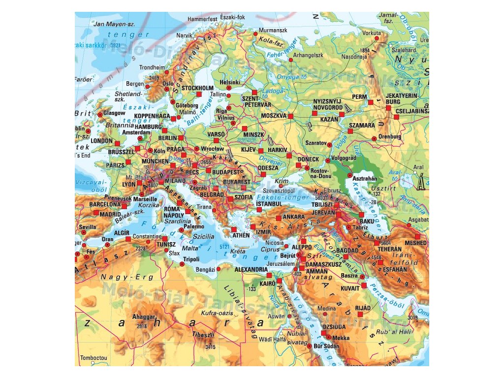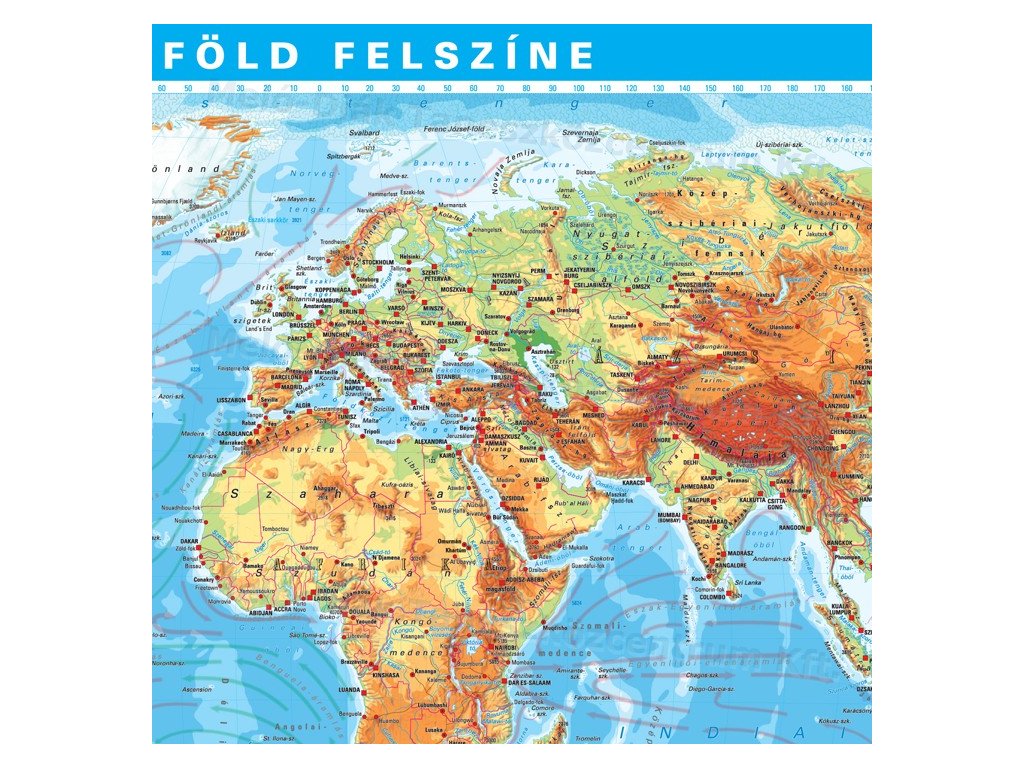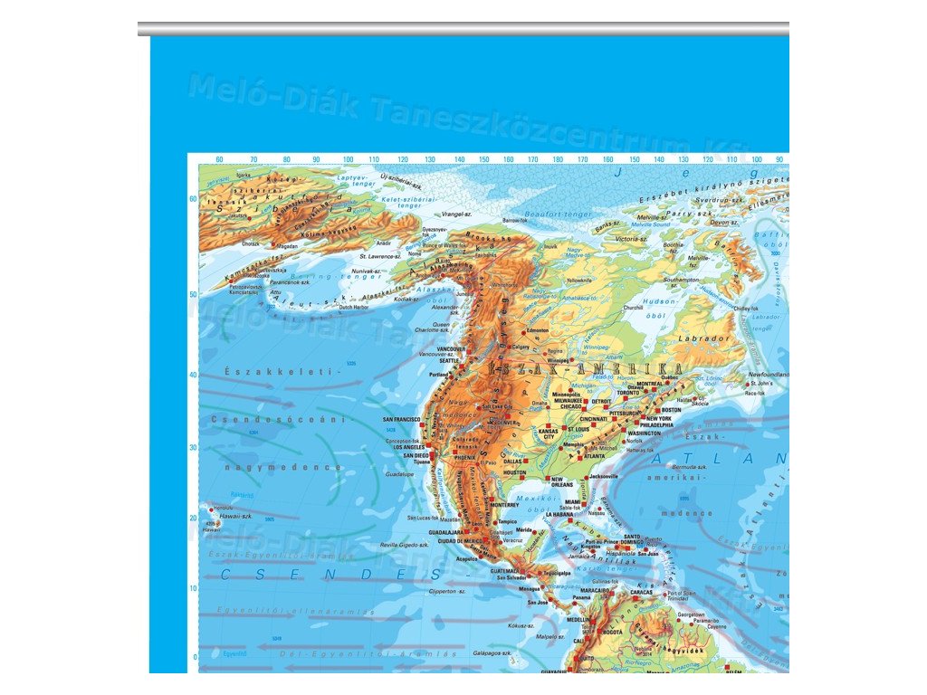 A térkép laminált, fém sínnel ellátott, mérete 140x100 cm.