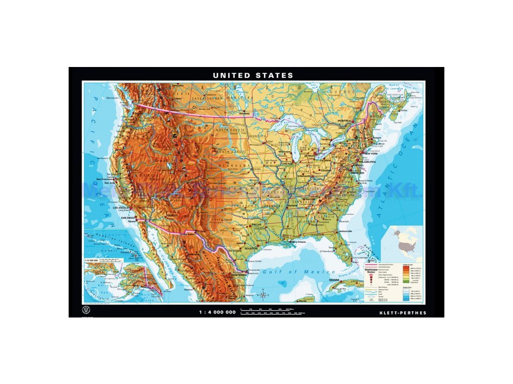 Amerikai Egyesült Államok domborzata - hátoldalán a föld domborzata, angol nyelvű
