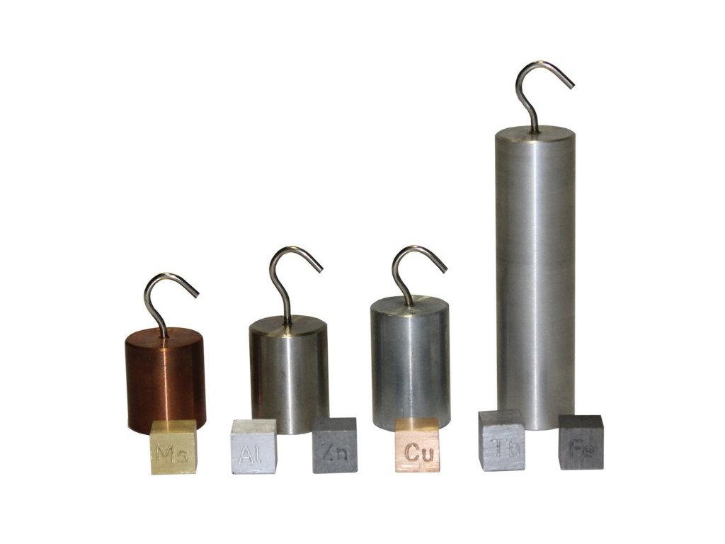 • 4 db különböző térfogatú, de azonos tömegű henger akasztóval.