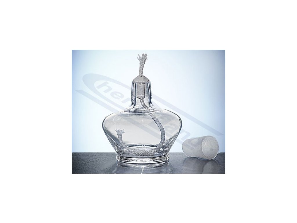 Üveg borszeszégő, polipropilén zárókupakkal kémia órákra, oktató laboratóriumokba.
