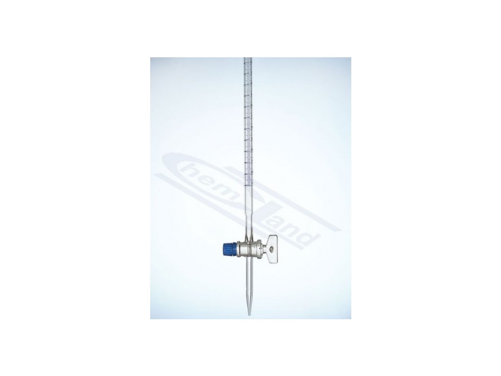 B-jelű, egyenes üvegcsapos büretta DIN 12700 szabvány szerint.