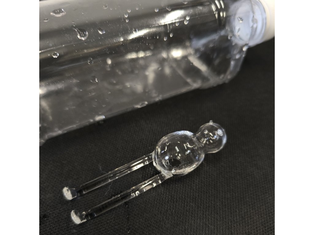 Ezután a kis üveg búvár figurát, félig vízzel megtöltve beleállítjuk a palackba.
