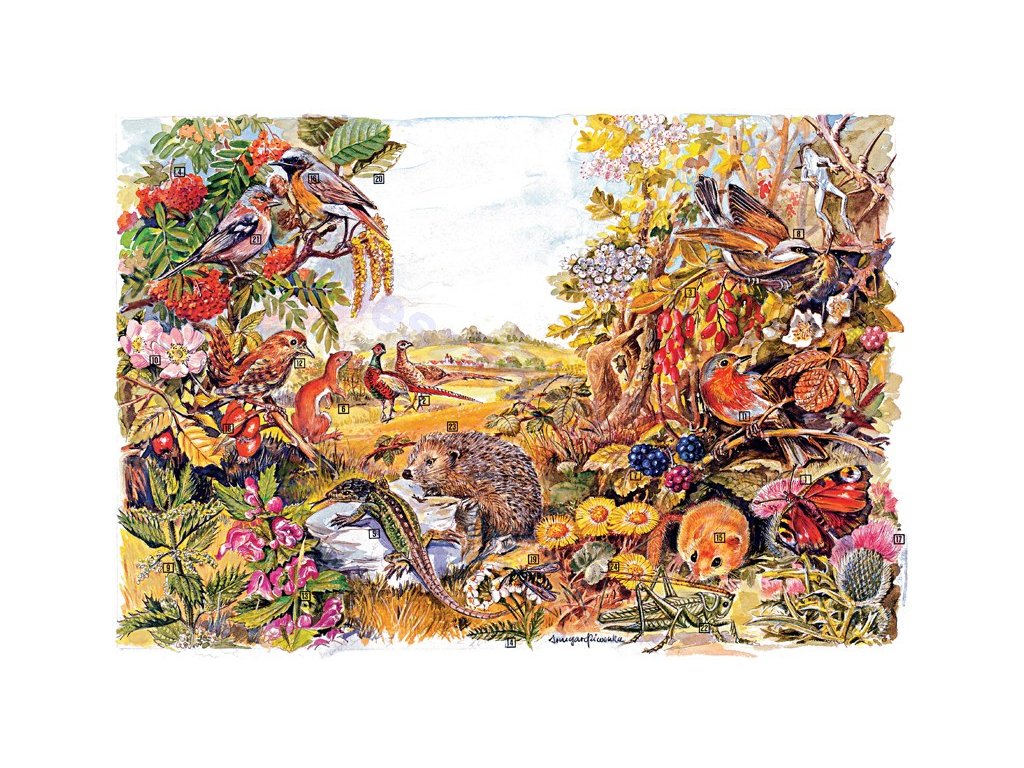 5. Fürge gyík, 6. Közönséges menyét, 7. Gyalogszeder, 8. Tövisszúró gébics, 9. Csalán, 10. Csipkerózsa, 11. Vörösbegy, 12. Ökörszem,