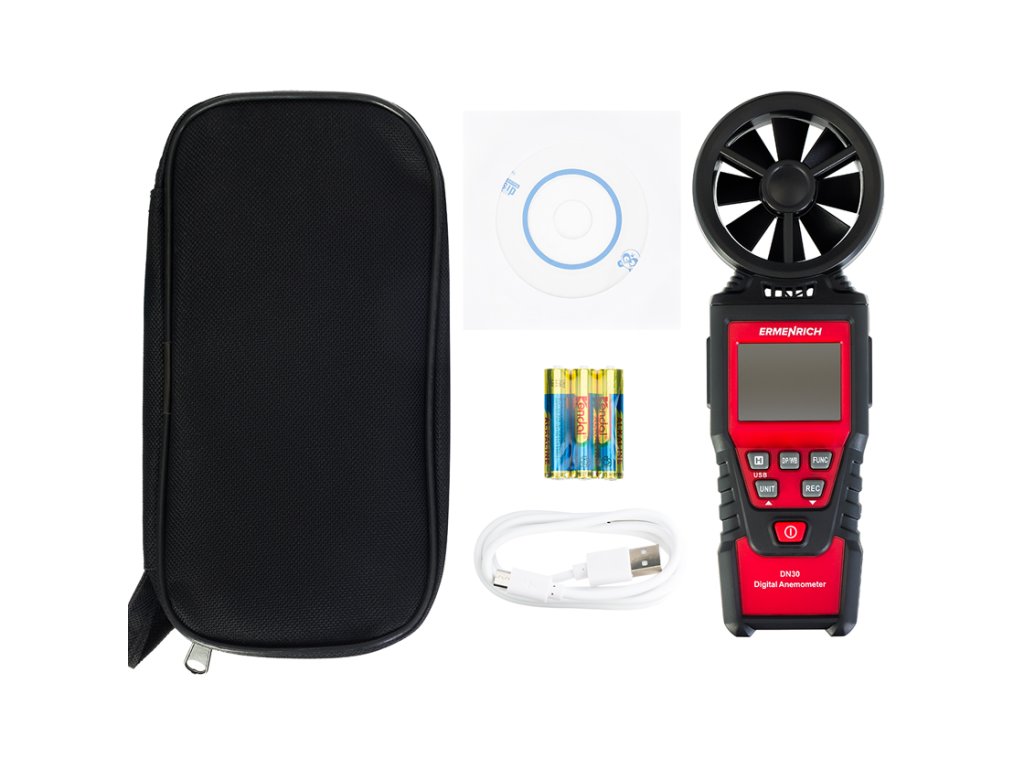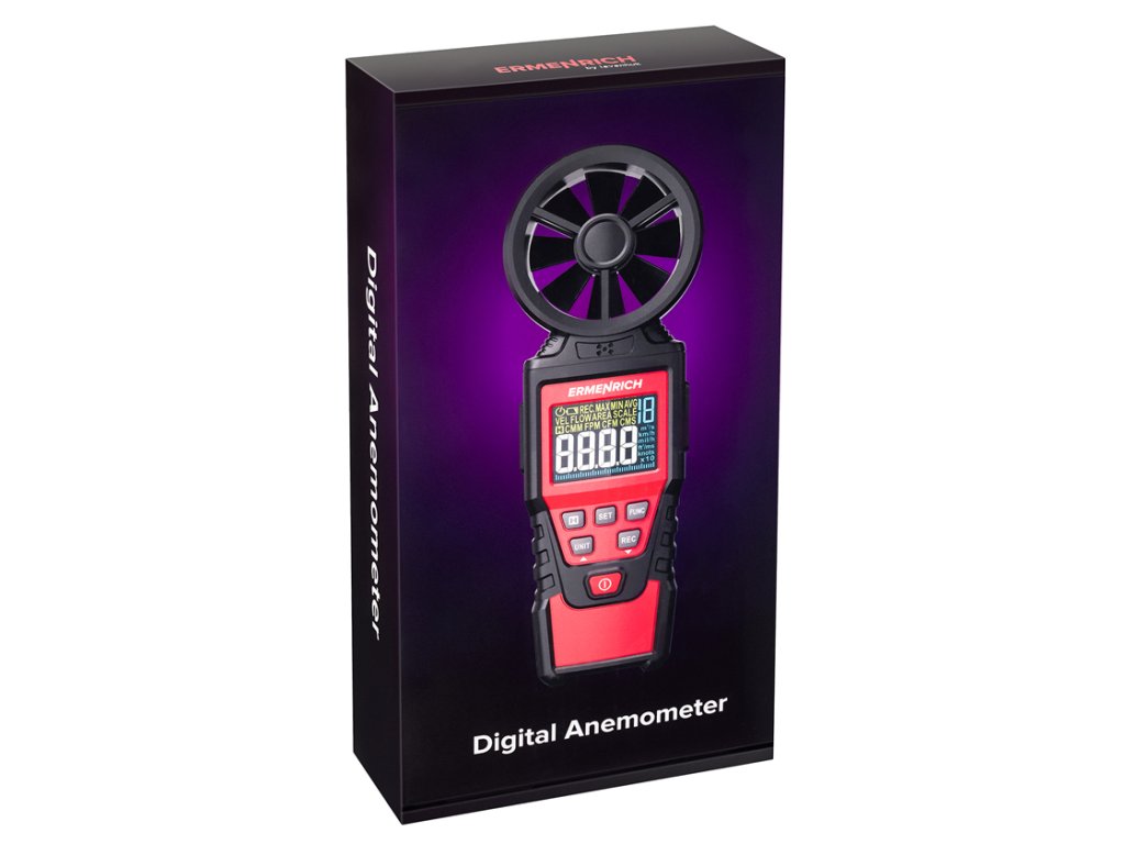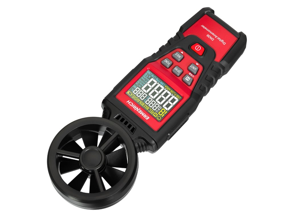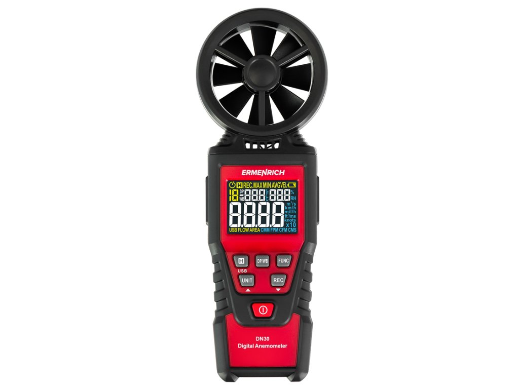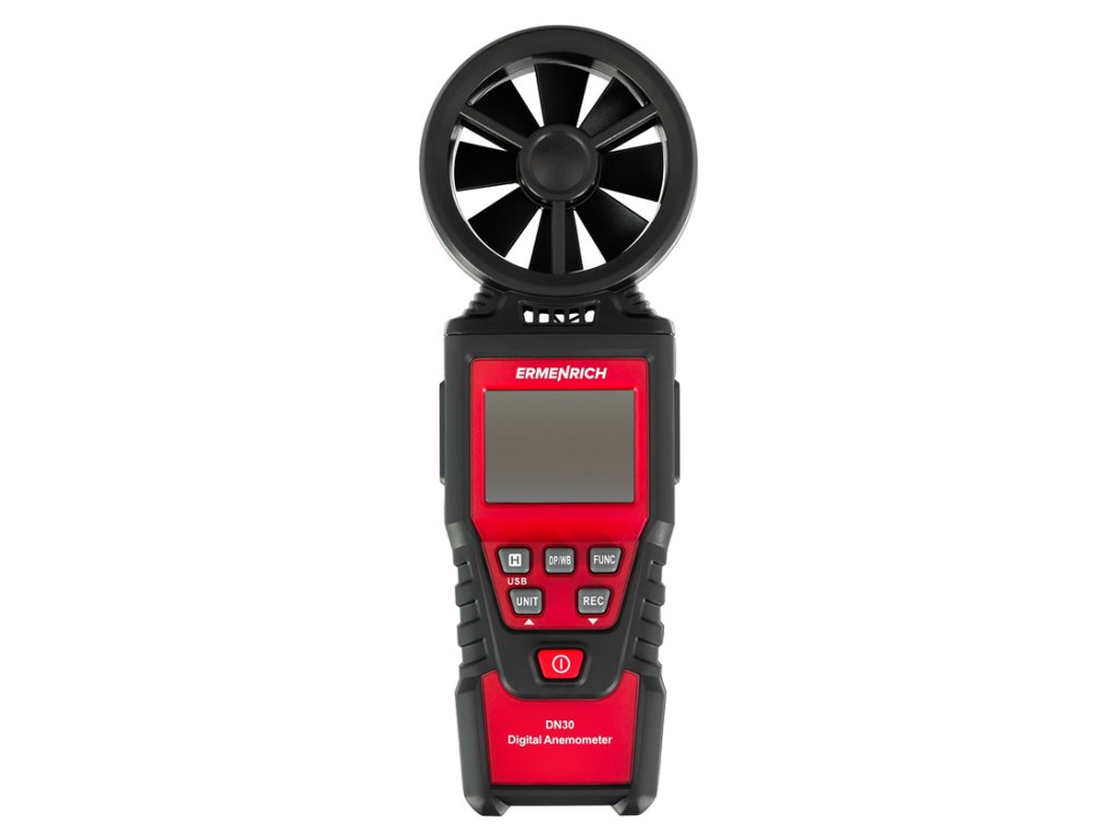 Az Ermenrich Seek DN30 digitális anemométer 3 az 1-ben készülék, amellyel egyszerre három fontos környezeti érték, a hőmérséklet, a páratartalom és a légáramlás sebessége is mérhető.