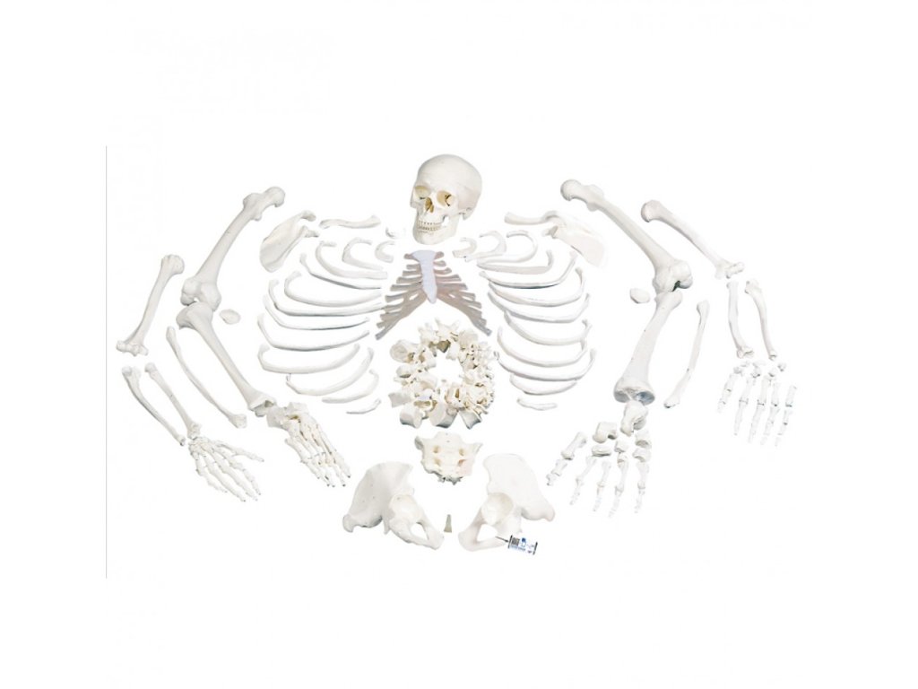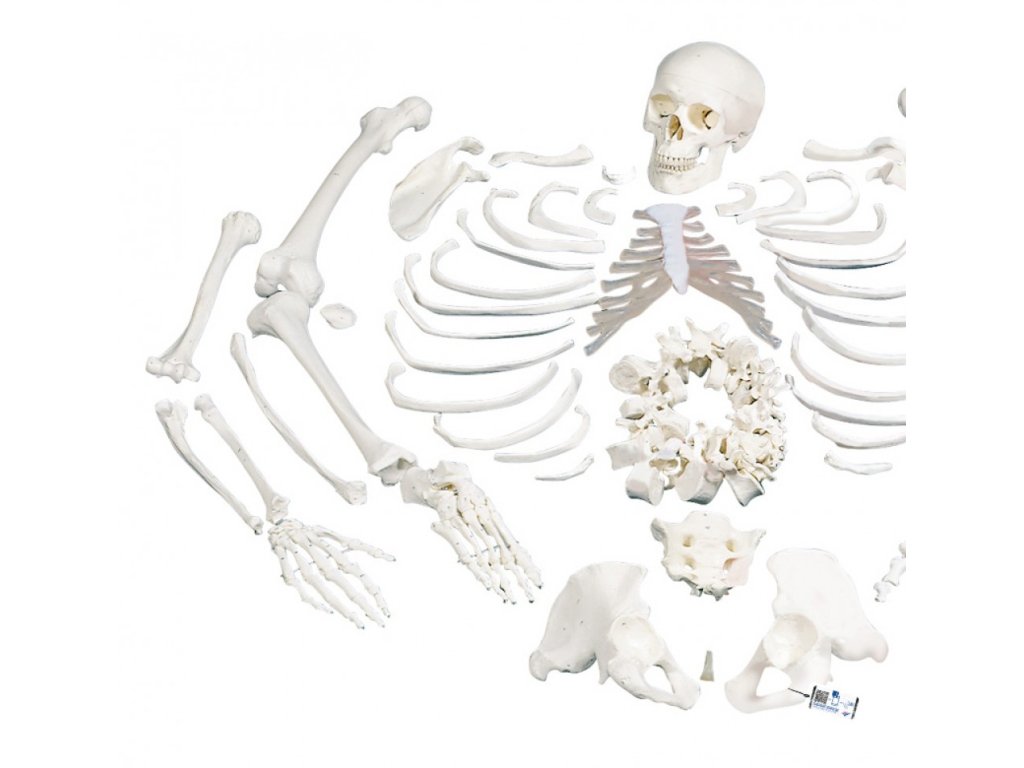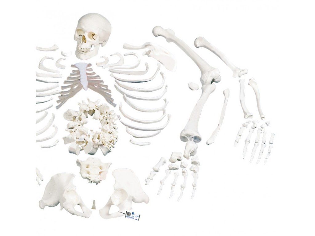 A szétszedett csontváz életnagyságban ábrázolja a csontokat.