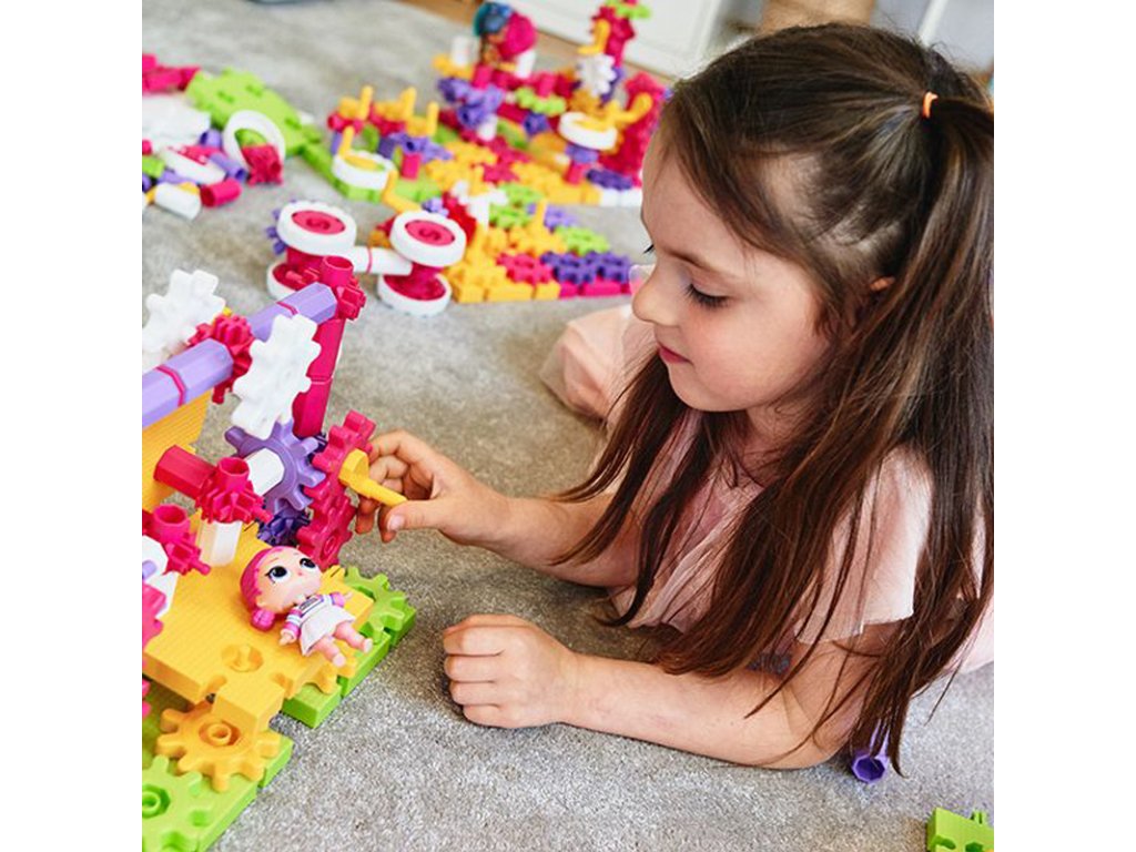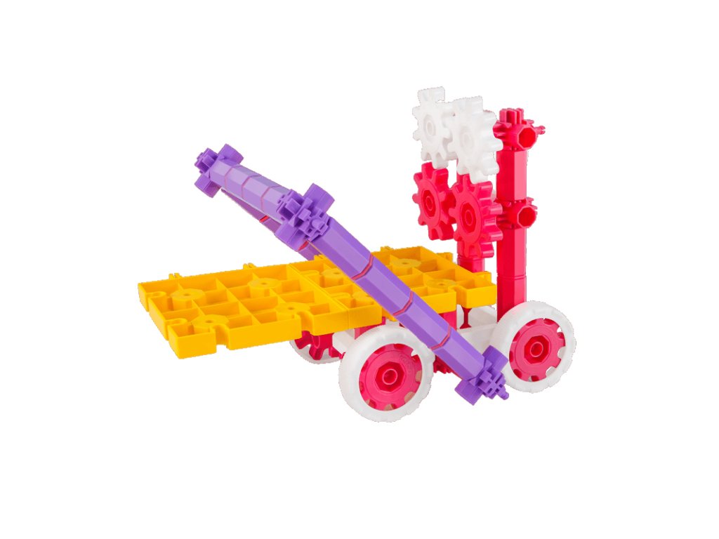 Életkorukhoz és képességeikhez mérten választhatnak vízszintes és függőleges szerkezetek megépítése között. A fogaskerekek, hajtókarok és összekötőhengerek az alaplapokra könnyen csatlakoztathatóak és könnyen el is távolíthatóak.