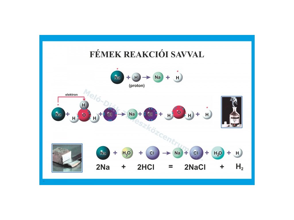 Fémek reakciói savval, fali oktatótabló