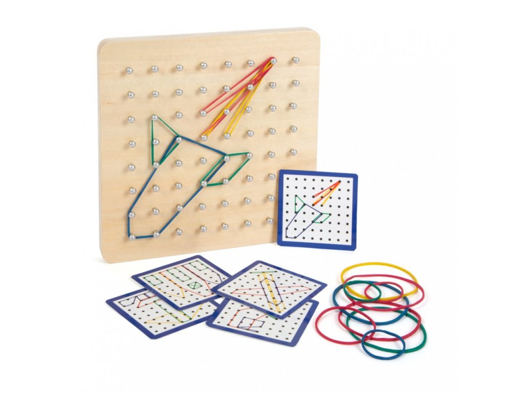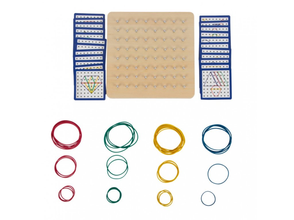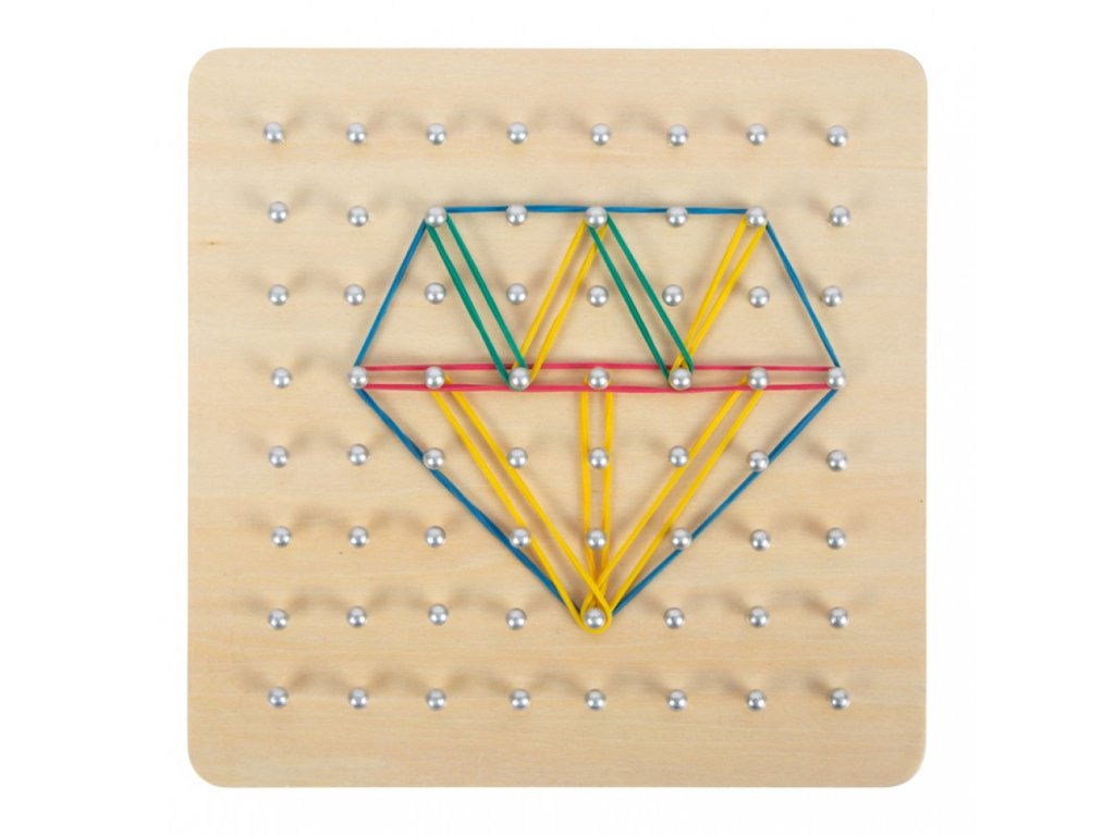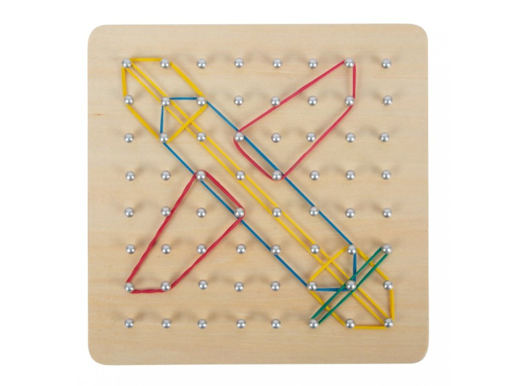Sokoldalú kreatív játék tömör fa alappal, 8x8 darab lekerekített fejű tüskével.