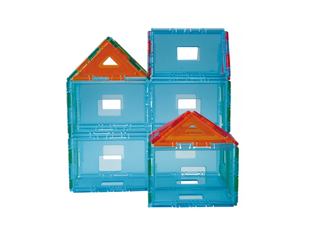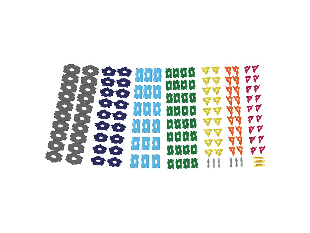 A készlet 165 db-ból álló átlátszó, 7 különböző geometriai alakzatot tartalmaz.