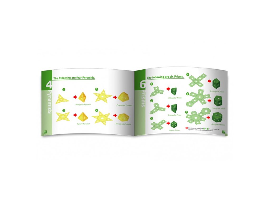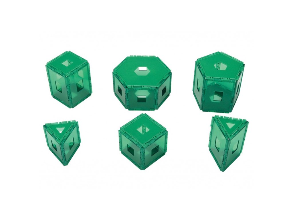 A készlet 240 db-ból álló átlátszó és nem átlátszó, 7 különböző geometriai alakzatot tartalmaz. Minden alakzat közepén azonos alakú lyuk található, a könnyebb forma-felismerés érdekében. Építhetünk piramisokat, platóni testeket, archimédeszi modelleket, és egyéb geometriai alakzatokat is. Lezárható műanyag dobozba szállítjuk. A doboz mérete: 307x230x160 mm. 4 éves kortól ajánljuk!