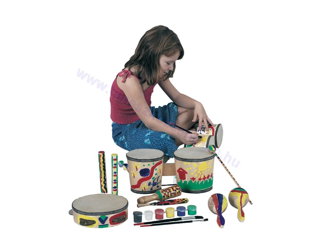 Tartalma: festhető hangszerek, táska, ecsetek ésfesték.Mérete:27x17x15cm.