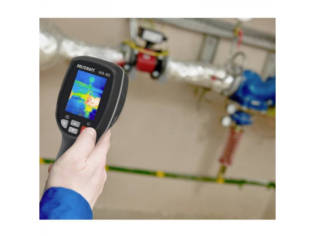 Akár repedések a homlokzatban, akár szivárgások a csővezetékekben a hőkamera sokféleképpen használható. Rögzített gyújtótávolsággal és 247 mK hőérzékenységgel alkalmas napelemes rendszerek, gépek vagy fűtési rendszerek ellenőrzésére is -20 és +600°C közötti hőmérséklet tartományban. 32 x 32 pixeles bolométerrel mérjük a teljes hullámhossz-spektrumot 9 Hz-es képsebességgel. A helyes hőmérséklet meghatározása érdekében az emissziós képesség beállítható a mérendő anyaghoz, és emellett hőmérséklet-kompenzáció áll rendelkezésre a környezeti hőmérséklet hatásainak elkerülése érdekében.