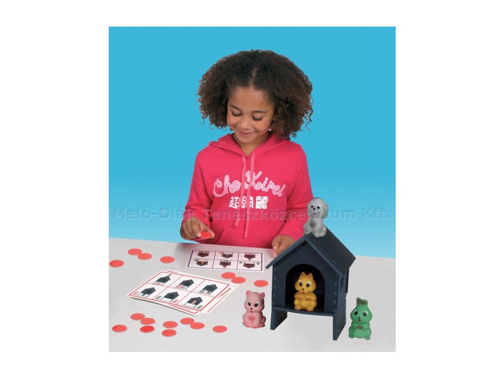 Izgalmas társasjáték 25 tanuló osztálytermi foglalkoztatásához. Célja a térbeli helyzetek, ellentétek, oldal vagy szimmetria fogalmak tisztázása és megértése, játékos versengéssel. A belül-kívül, alatta-felette, előtte-mögötte, jobb- vagy bal oldalon stb. fogalmak megértése már csak azért is nehéz, mert a tanítónéni (vagy óvónéni) házikója szemben van az osztállyal.