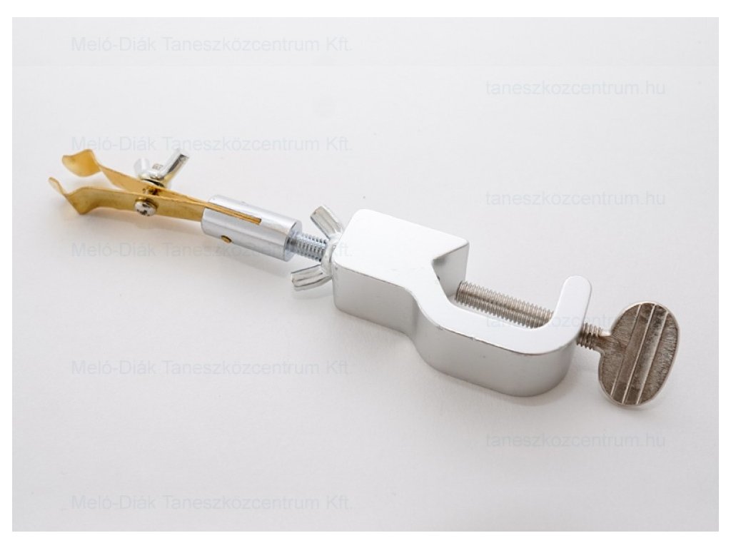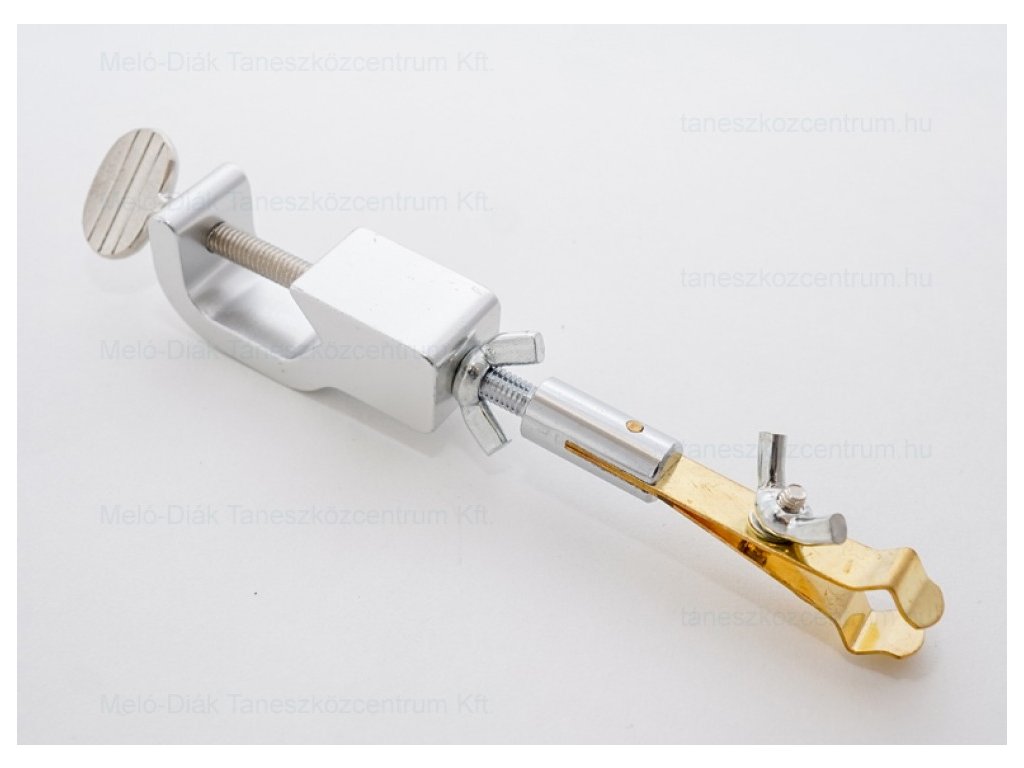 Állványrúdra csavarozható hőmérőfogó, alumínium, 15 cm hosszúságú.