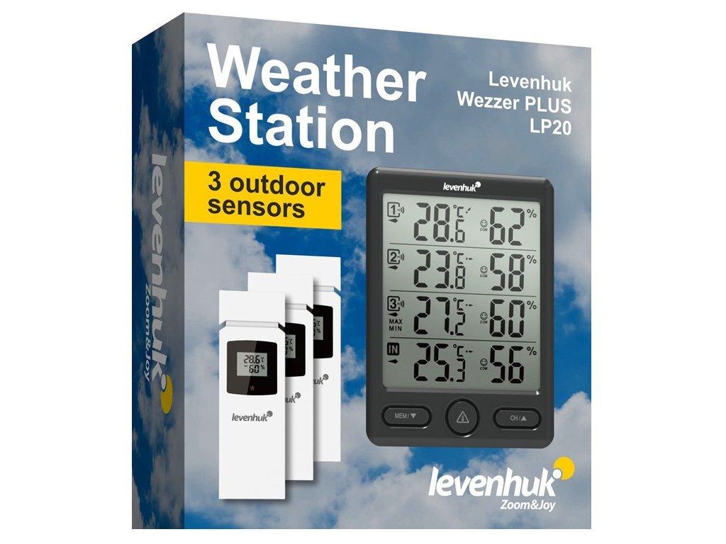 A Wezzer Plus LP20 időjárás állomással, egyszerre akár négy helyen is mérheti a hőmérsékletet és a páratartalmat. Nagyon praktikus eszköz a hőmérséklet változásainak nyomon követésére, vagy a mikroklíma megfigyelésére akár az épület több helyiségében is.