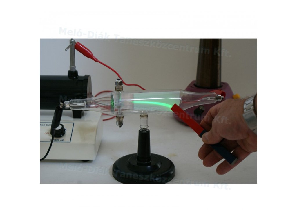 A kísérletben a katódsugárcsövet és egy nagyfeszültségű tápegységet használunk. Az elektrosztatikus eltérítés helyett, többféle mágnessel téríthetjük el a zöld színű elektronnyalábot, különböző pólusaival a katódsugárcső fölé vagy alá helyezve.