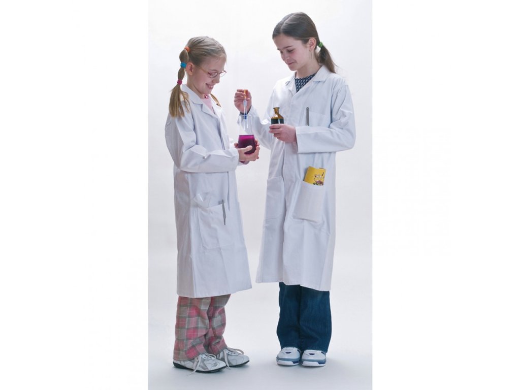 100% pamutból készült laboratóriumi köpeny iskolába, mellzsebbel és két darab oldalzsebbel.