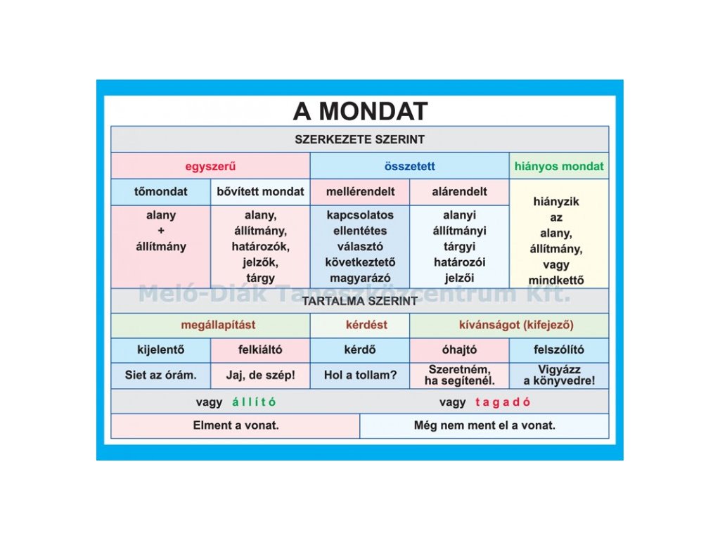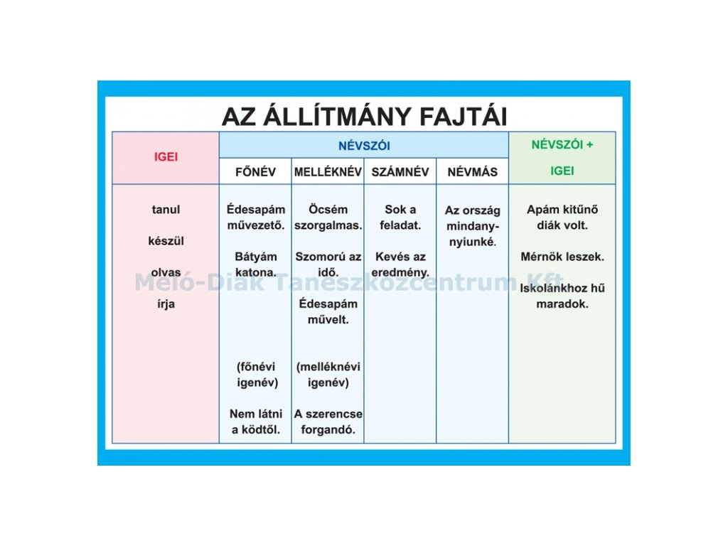 3128 - Az állítmány fajtái, 70x50 cm-es méretben