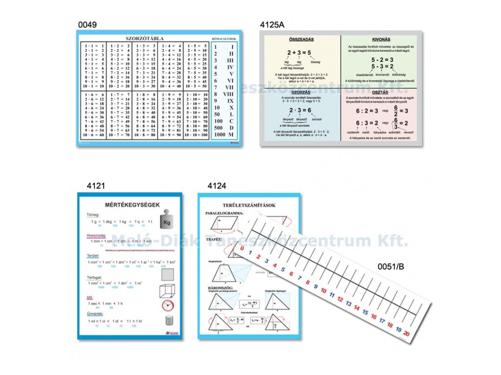 1 db 4124 - Területszámítások, fali oktatótabló.