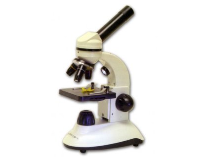 A mikroszkóp minden optikai eleme magas minőségű és jól átlátszó üvegből készült. A fényáteresztő képesség további növelése érdekében a lencséket több rétegből álló bevonat védi, így a képek tiszták, élesek és kontrasztosak lesznek. A mikroszkóp három objektívlencsével van felszerelve, a nagyítást a revolverfej forgatásával lehet módosítani.
