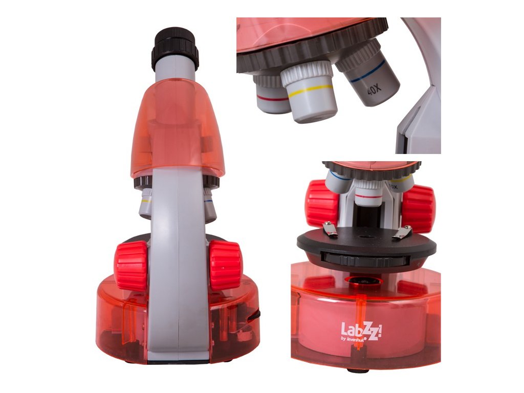 Három, minőségi 4- szeres, 10-szeres és 40-szeres nagyításra képes objektívlencsével, valamint széles látószögű, 10 - 16-szoros nagyítási fokú, két pozícióba csúsztatható szemlencsével rendelkezik, amelyek maximálisan 640-szeres nagyítást biztosítanak. A minőségi optikai elemek igazán világos, éles és élénk képeket készítenek a megfigyelt mintákról. Az alsó változtatható fényerejű LED világítás lehetővé teszi átlátszó minták áteső fényben történő tanulmányozását.