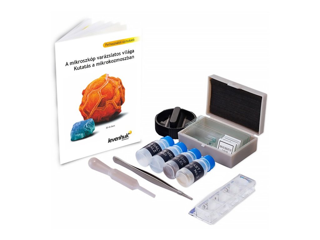A mikroszkóp kifejezetten gyerekeknek, a mikrokozmosz legfiatalabb felfedezőinek készült. Minden egyes mikroszkóphoz jár egy 50 db-os kísérletező készlet, amely mindent tartalmaz, amire az otthoni, önálló kutatás során szükség lehet. A mellékelt színes használati útmutató érdekes és tartalmas olvasmány egy fiatal felfedező számára.