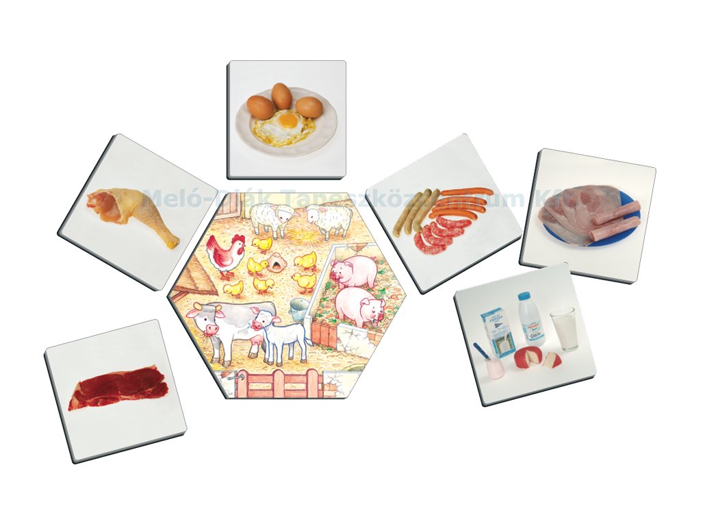 Rakjuk körbe a főkártya oldaléleit a megfelelő élelmiszer kártyákkal. Közben sok mindent megbeszélhetünk: a parasztudvarban található állatokat, a házi kertben levő zöldségeket, a gyümölcsös, a szántóföld vagy akár a tengeri halászat élelmiszereit.