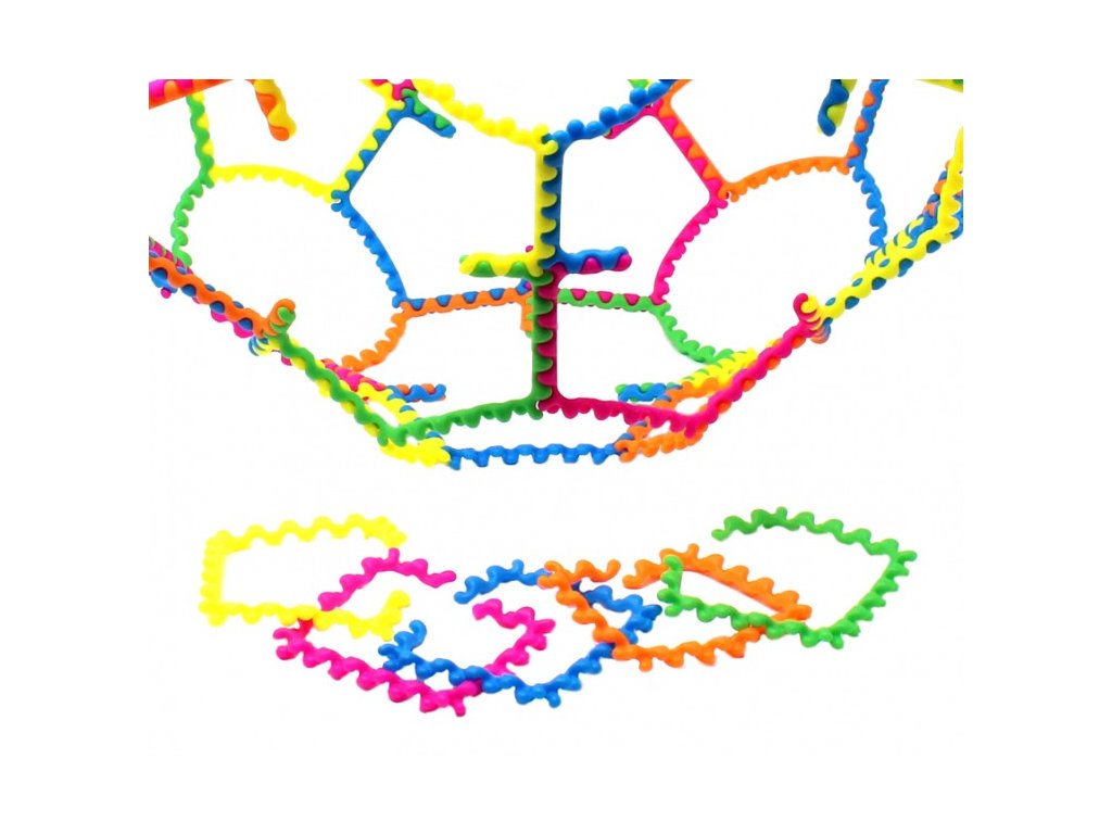 Könnyen hajló műanyag darabok vidám, élénk színekben.