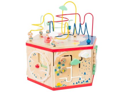 100%-ban FSC* jelzésű fából készült, színes, betű-szám vezető labirintus játék, kétnyelvű (angol, német) használhatósággal.
