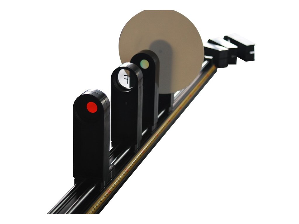 A burkolattal védett 50 mm átmérőjű optikai elemek, közvetlenül a sínekre rögzíthetők, könnyen csúsztathatók,