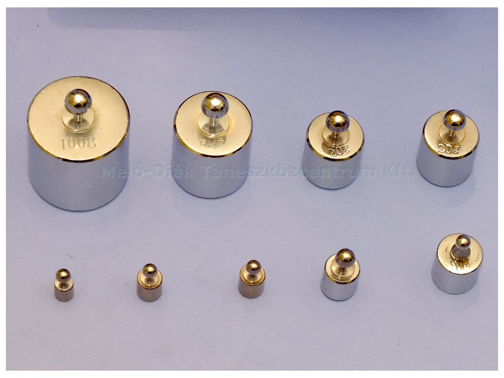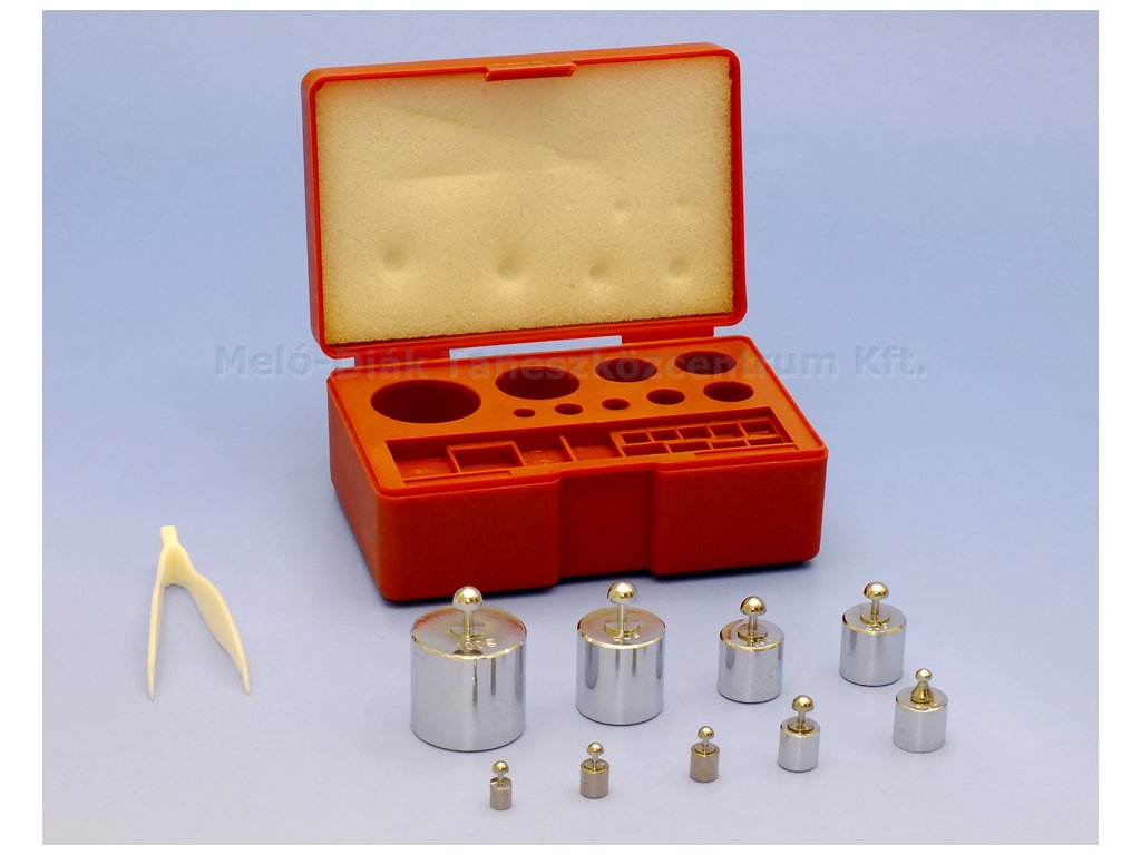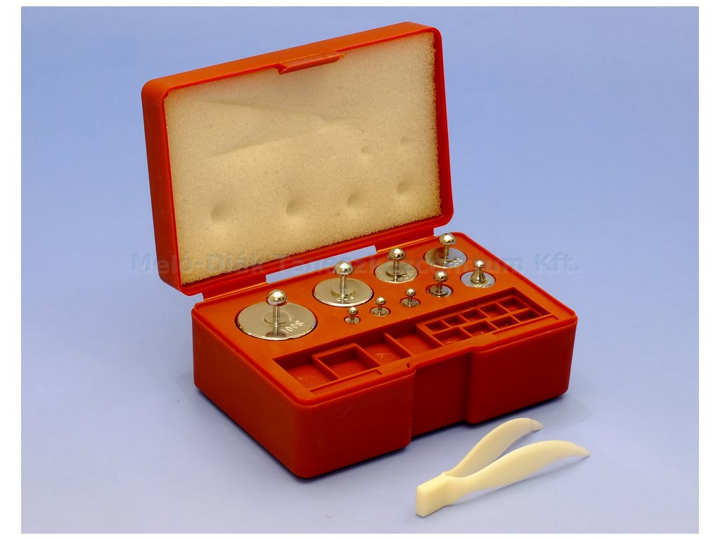 1x1 g, 2x2 g, 1x5 g, 1x10 g, 2x20 g, 1x50 g, 1x100 g.
