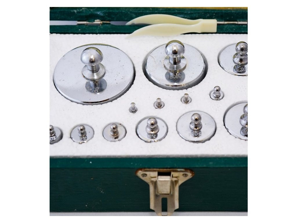 1x1 g, 2x2 g, 1x5 g, 1x10 g, 2x20 g, 1x50 g,