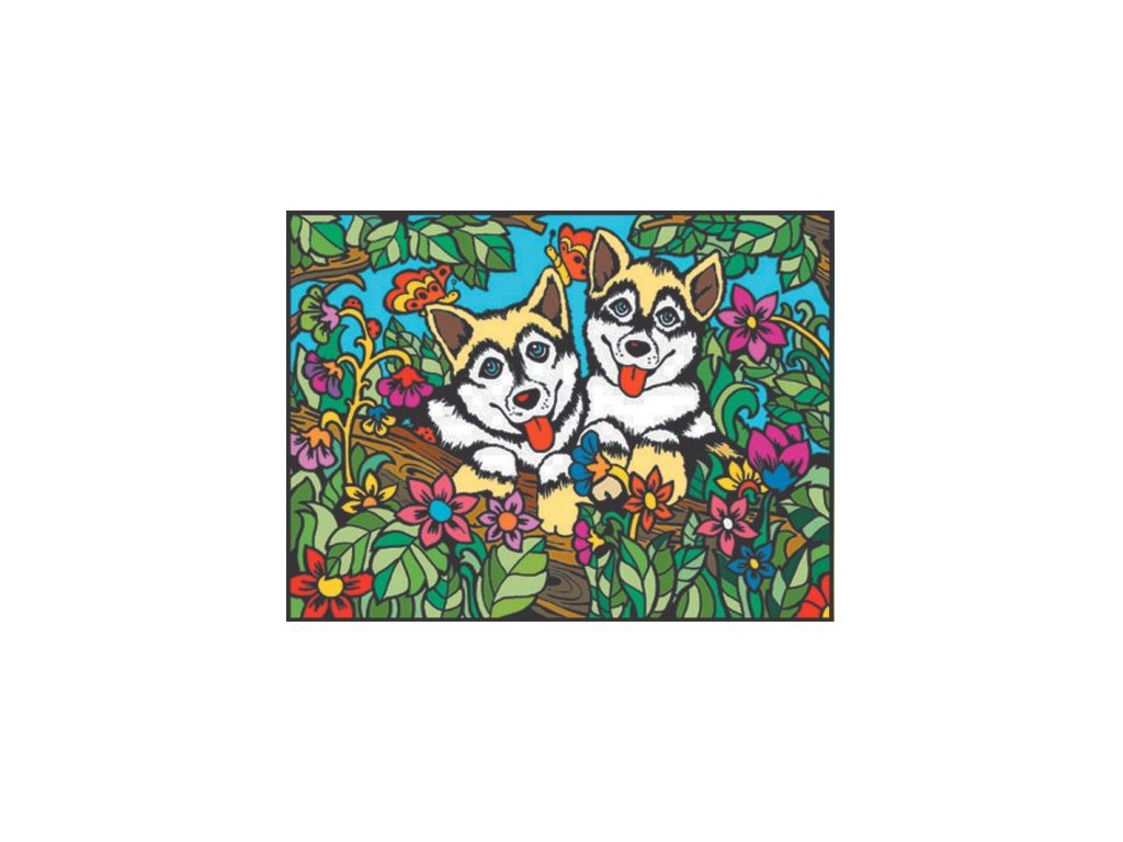 Színező (Két husky), bársony felületű, 12 db filctollal, 35x47 cm