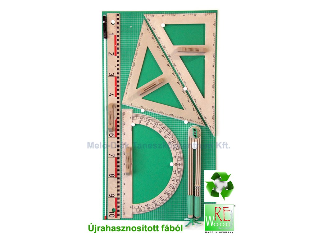 Táblai vonalzó garnitúra, 6 db-os, ÚJRAHASZNOSÍTOTT FÁBÓL KÉSZÜLT