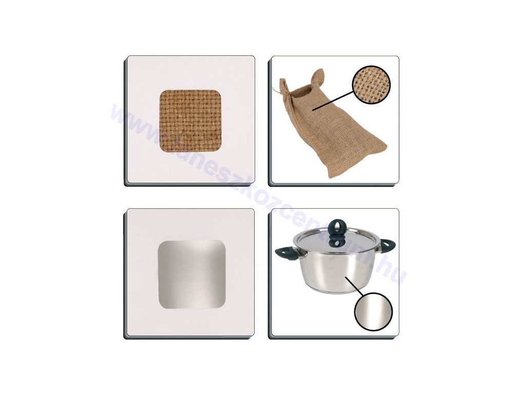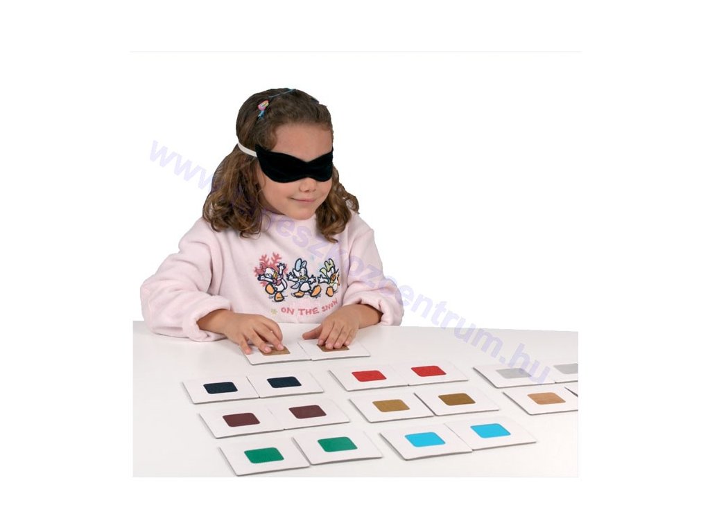 Ez a játék a különböző tapintású anyagok és a hozzájuk tartozó fényképek társítása révén fejleszti a gyermekek tapintását. A játék tartalma: 16 db különböző tapintású kártya (8 pár) + a különböző tapintású kártyákhoz tartozó 16 db fénykép + 2 db álarc. A látás és tapintás segítségével, a valóságos tárgyakról készült fényképek révén a gyermek kapcsolatot tud teremteni a különböző anyagokból készült tárgyak tapintása és fényképe között. A kártyák hátoldalán található a helyes megoldás.
