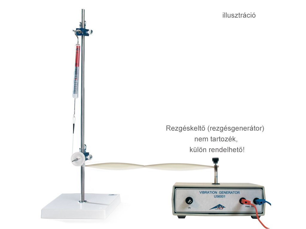 Rezgéskeltővel, rezgésgenerátorral (kód: U56001, nem tartozék) használható eszközkészlet álló transzverzális hullámok és hullámhosszuk demonstrálására a frekvencia és a gumikötél feszültségének függvényében.