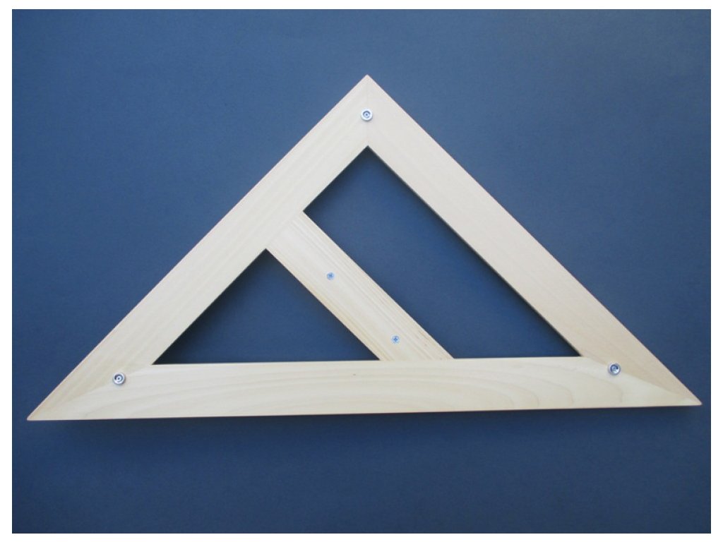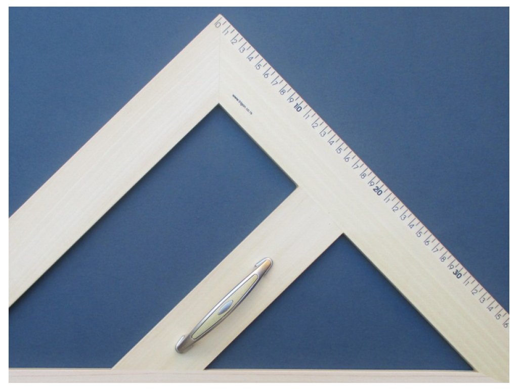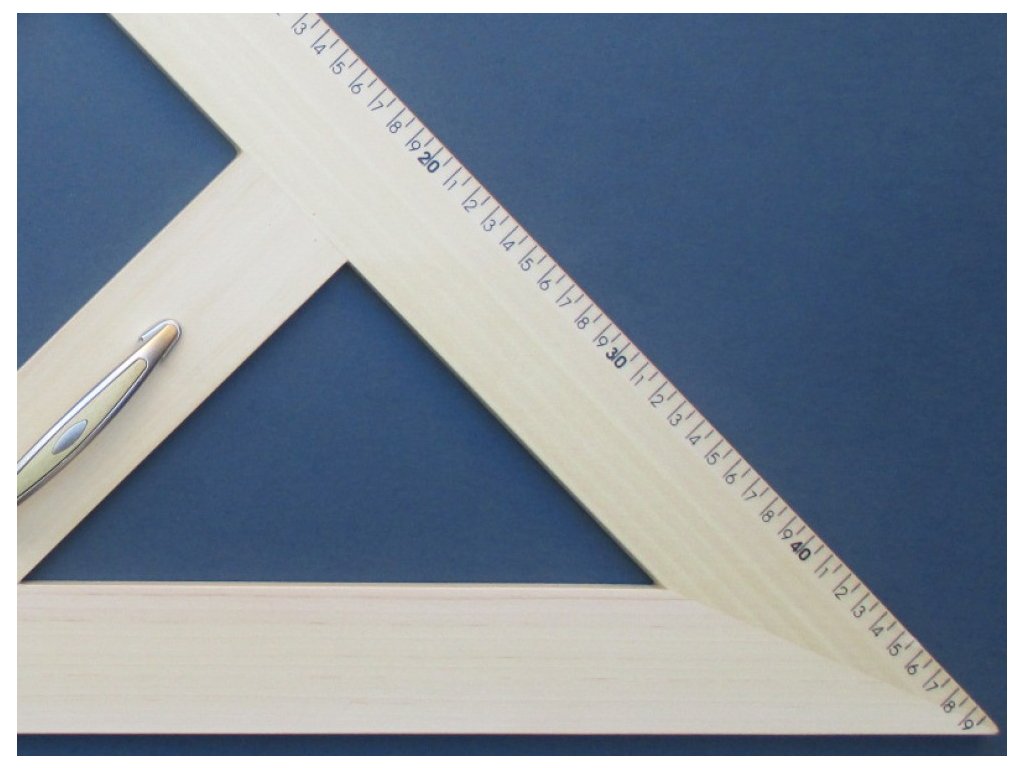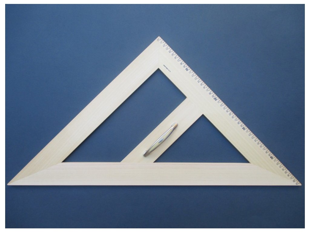 Hársfából készült 45°-os táblai háromszög vonalzó, mágneses hátlappal, fogantyúval.